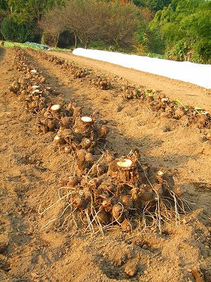 2枚目みたいに、手掘り、です。私は今年は1本も掘っておりません。楽です。この畑、2年の約束でお借りしたので、1月中に掘りあげなくてはなりません。そして、この畑用の古いトラクターの出番が終わったら、自宅の敷地内のトラクター置き場を壊して、息子のパン作業場の準備にとりかかります。というわけで、このところは、息子がパン焼きや出荷作業の合間に、せっせとゴボウを掘っていたわけです。