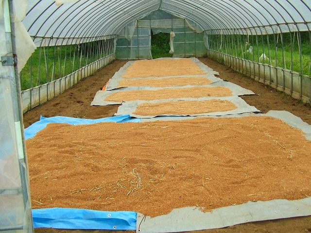 そして麦刈り。農林61号と、ニシノカオリの2種類、2反半くらいの作付けですが、何とか刈り終わって、ハウスに広げました。乾燥機はありません。もう、これ以上作付けは増やせません。構造改革がなければ・・・